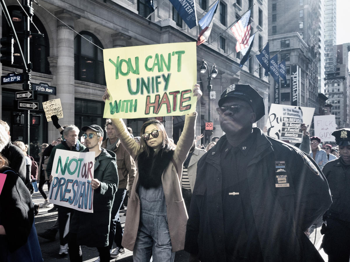 “Now is the time to resist the slightest extension in the boundaries of what is right and just,” she writes. “Now is the time to speak up and to wear as a badge of honor the opprobrium of bigots. Now is the time to confront the weak core at the heart of America’s addiction to optimism; it allows too little room for resilience, and too much for fragility. Hazy visions of “healing” and “not becoming the hate we hate” sound dangerously like appeasement. The responsibility to forge unity belongs not to the denigrated but to the denigrators. The premise for empathy has to be equal humanity; it is an injustice to demand that the maligned identify with those who question their humanity.”